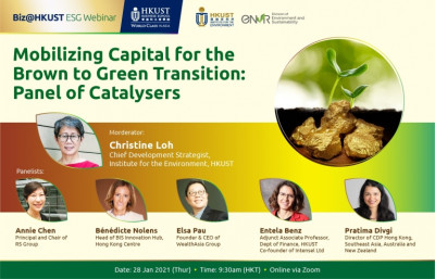 Biz@HKUST ESG Webinar: Mobilizing Capital for the Brown to Green Transition: Panel of Catalysers 28 Jan 2021 (Thursday) Off Campus
