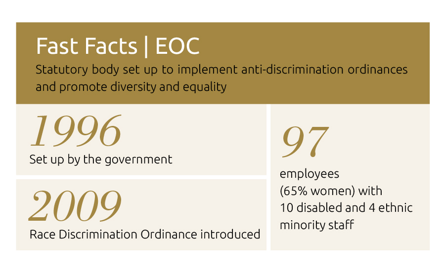 Making Hong Kong a fairer place takes time. It was only in 1996 that the city’s women won the right to the statutory paid holidays already enjoyed by men, with the introduction of the Sex Discrimination Ordinance. The government-funded Equal Opportunities Commission (EOC) was established the same year. Since then, the commission has worked hard to promote equality of opportunity and an inclusive community.