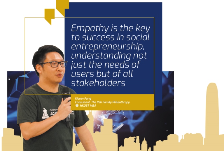 Before doing his MBA at HKUST, Fung had a computer science degree and a business management background. His career in social innovation is a culmination of his technological understanding and business and leadership knowhow, merged with his personal mission.