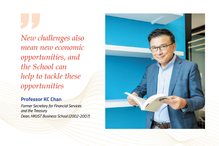 KC Chan: When I reflect on the difference between the economy now and 30 years ago, there’s a big difference. The economy is different, most economic growth is generated by technology, new companies, new economic models, and sustainability. It raises new issues and challenges for us. But new challenges also mean new economic opportunities, and the School can help to tackle these opportunities, manage the change in technology and the corporate landscape, and give rise to individual entrepreneurs.