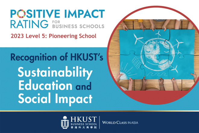 For the fourth consecutive year, HKUST Business School has been recognized by the Positive Impact Rating (PIR) for its sustainability education and social impact initiatives. It is the only school in Hong Kong to receive this honor again, and one of the few business schools to advance to the highest PIR level (Level 5: Pioneering School). The School has achieved improved scores in all dimensions, from governance, culture, programs, student support, and public engagement. The PIR is a rating by business students who evaluate how their schools address societal and sustainability challenges and prepare them for a sustainable future.