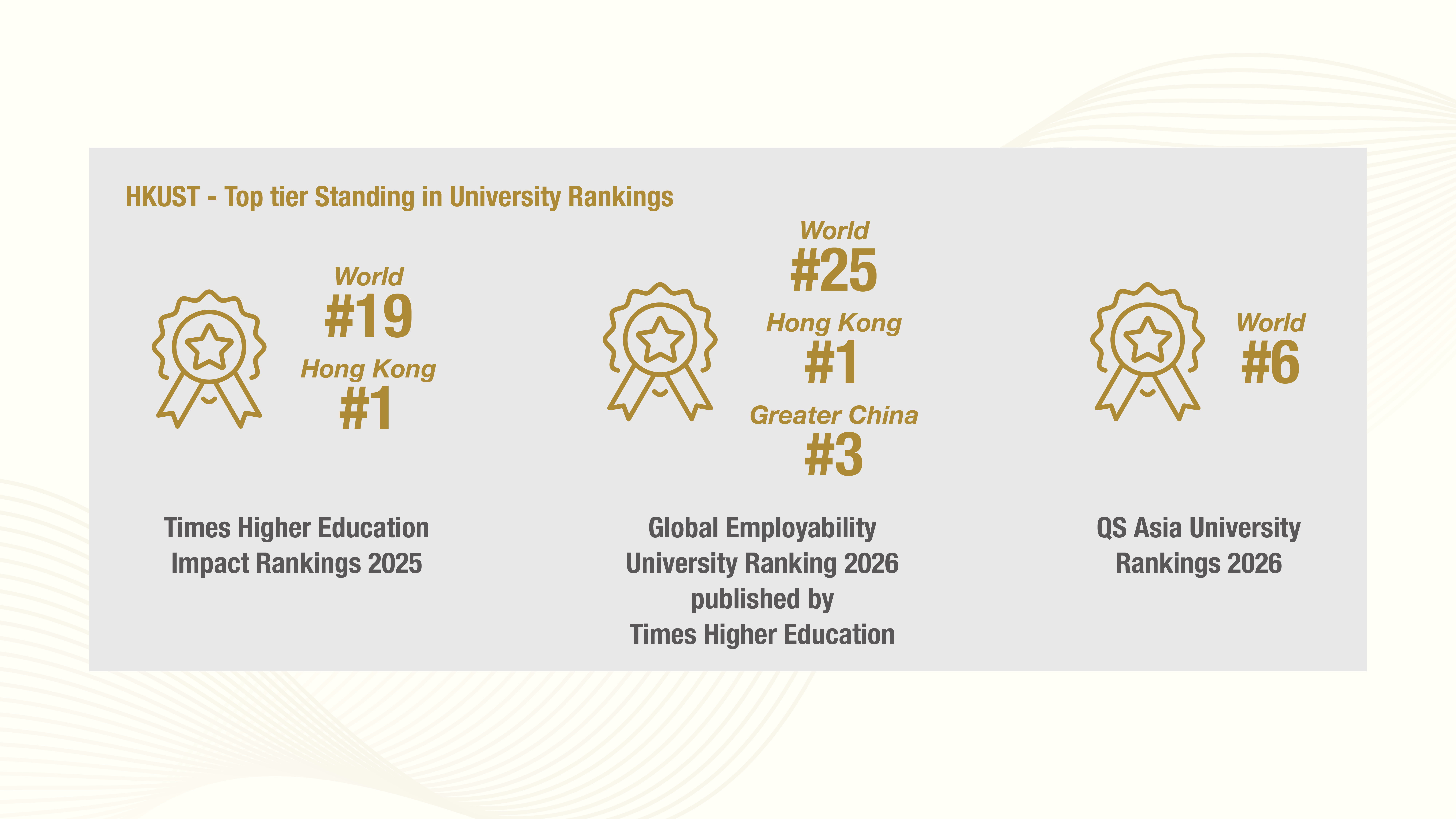 Those developments also chime with the spirit of entrepreneurship, which is so evident in so much of what the University does. “Owning things in your own hands and doing them end to end—that defines success,” he says. He believes the ability to build things from scratch, a willingness to take risks, and a keenness to tackle real issues with social impact, is what sets HKUST students apart.