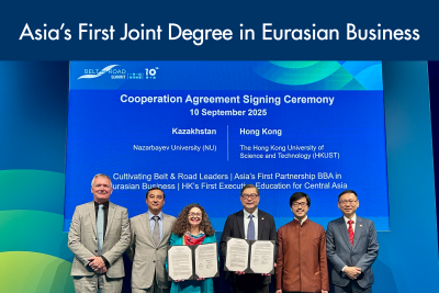 HKUST Business School has formed a landmark partnership with Nazarbayev University (NU), a leading institution in Central Asia, to launch Asia’s first joint degree program in Eurasian Business. This collaboration was formalized through an MoU signed during the Hong Kong Trade Development Council’s 10th Belt and Road Summit held on September 10, marking a
