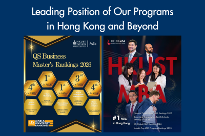 HKUST Business School’s MSc and MBA programs have achieved outstanding results in multiple global rankings. Five MSc programs have been ranked among top spots in Asia in the prestigious QS Business Masters Rankings 2026: MSc in Global Operations: 1st in Asia for Master’s in Supply Chain Management MSc in Marketing: 1st in Asia for Master’s in Marketing MSc