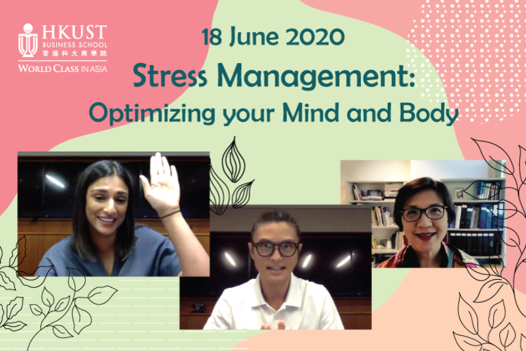 On June 18, we were delighted to have two experienced coaches – mind and body trainer Cavan CHAN (MBA alumnus) and actor-instructor Natasha JAIN – to host an online workshop of Stress Management: Optimizing your Mind and Body and shared useful mental and physical exercises to help participants navigate through their stress and emotions.