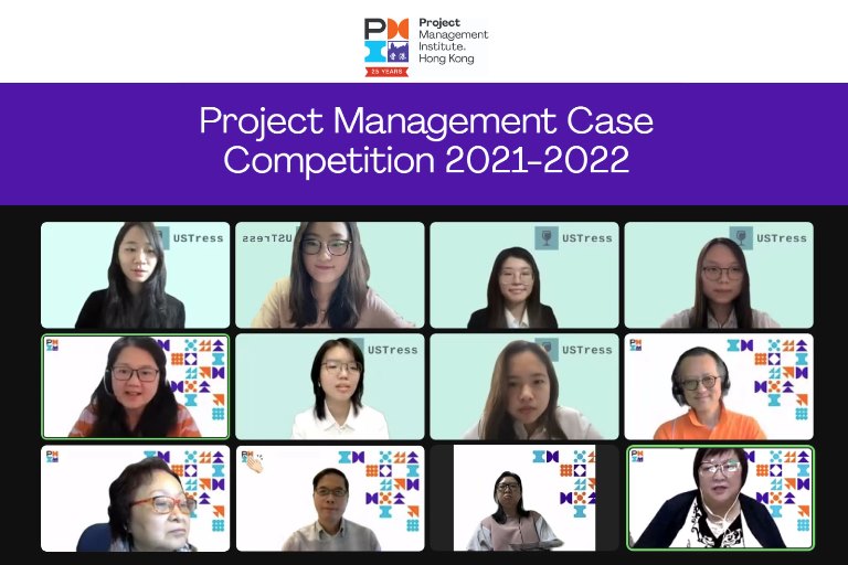 Two student teams of the HKUST Business School participated in the Project Management Case Competition 2021-2022 and won the Distinction Project and Merit prize. Organized by the PMI Hong Kong Chapter, the competition encourages students to apply project management knowledge and skills learned through workshops by the organizer to propose projects for achieving transformation with the use of the latest technologies. Eight teams out of 36 were shortlisted to make their final presentations.