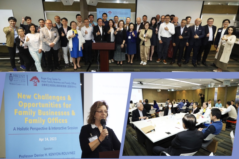 In April, a group of family business owners, their next generations, and professionals working for family businesses and family offices engaged in an insightful discussion on the challenges and opportunities for family businesses and family offices. The seminar was hosted by the HKUST Business School and its Roger King Center for Asian Family Business and Family Office, and conducted by Professor Denise H. KENYON-ROUVINEZ, a renowned expert, educator and book author in the field.