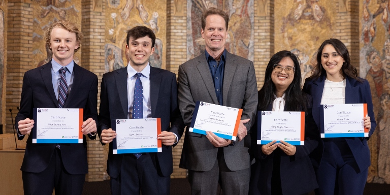 Congratulations to our undergraduate team that took third place at the International Case Competition at Maastricht 2023. The team comprises Year 2 World Bachelor in Business (WBB) students Ethan Zachary NOELL (first left), Carlo PANZERI (second left), Chiara TRIOLO (first right), and Quynh Trang TRINH (Monica) (second right). They prepared presentations and received coaching from Professor Stephen NASON (center), Professor of Business Education at the Department of Management and the WBB Program Director.