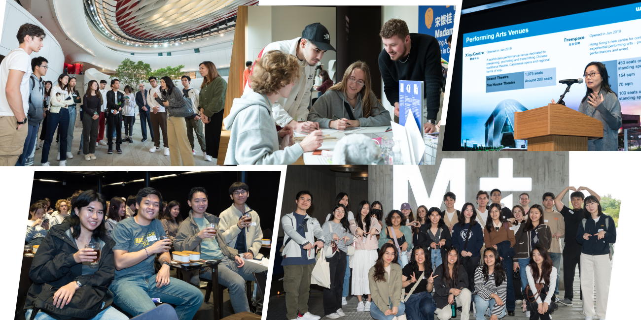 Over 70 undergraduate exchange students, both inbound and outbound, from the Business School gathered for a meaningful afternoon at the prestigious M+ Museum and the Xiqu Centre in the West Kowloon Cultural District in Hong Kong. The February 24 visit offered a blend of business insights, cultural immersion, and bond-building experiences for the group.