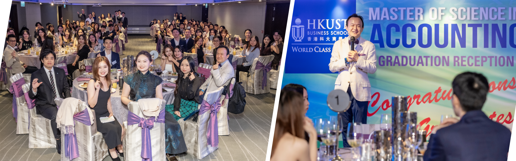 The HKUST MSc in Accounting (MSAC) Program hosted an unforgettable Graduation Dinner for the Class of 2024 by the end of May. This elegant evening seamlessly blended celebration and introspection, bringing together students, faculty, alumni, and guests from KPMG to honor the remarkable accomplishments of the graduating class.