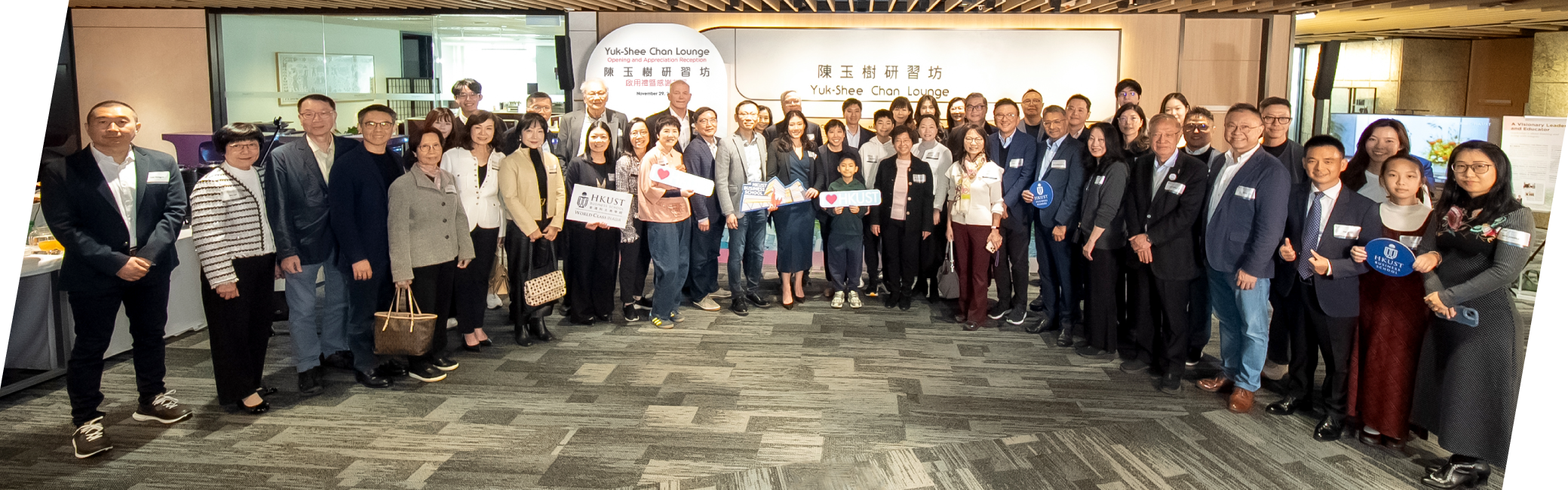 HKUST Business School is proud to honor the legacy of Prof. Yuk-Shee CHAN, our late Founding Dean and visionary leader, whose foresight and dedication laid the foundation for the School’s global reputation as “World Class in Asia.” With the generous support of alumni, faculty, staff, and friends, the Yuk-Shee Chan Lounge (陳玉樹研習坊) has opened on the newly renovated executive floor of the Lee Shau Kee Business Building.