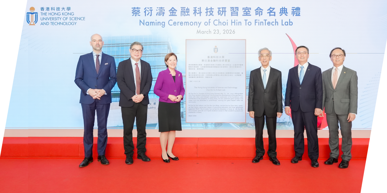 Community support has long underpinned HKUST and the Business School’s mission to excel in research and education. In recognition of the Choi family’s generous donation, a teaching laboratory in the Lee Shau Kee Business Building has been named the Choi Hin To FinTech Laboratory (蔡衍濤金融科技研習室).