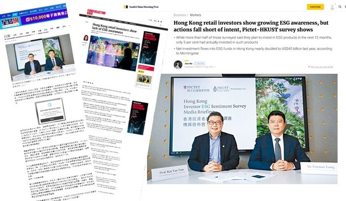 Various local and overseas media including , Fund Selector Asia, The Asset, The National Tribune, Mirage News, SCMP, HK Economic Times, Oriental Daily, Ming Pao, HK Economic Journal, Sing Tao Daily, Headline Daily, Bastille Post, HK Commercial Daily, Wen Wei Po, E-finet, ET Net, Infocast, AAStocks, Yahoo! finance, Sina Finance, TnP, and Guandian reported the findings from a survey co-led by HKUST Business School on Hong Kong retail investors’ attitude towards Environmental, Social and Governance (ESG) investing.