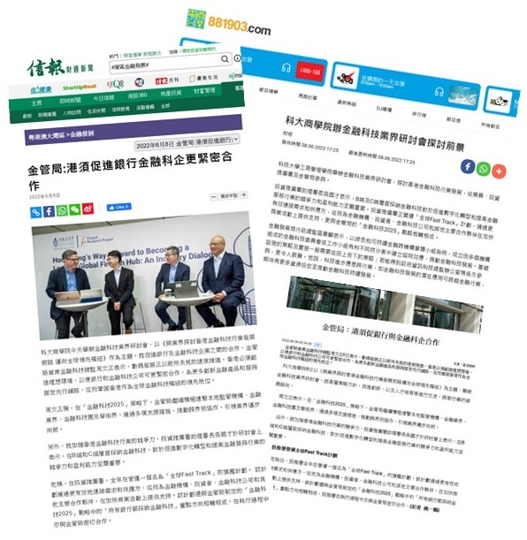 , Commercial Radio HK and HK Commercial Daily reported HKUST Business School’s fintech industry seminar, citing speakers from Invest Hong Kong, the Hong Kong Monetary Authority, and the Financial Services Development Council on way forward for the industry across strategy setting, innovation and talent building.