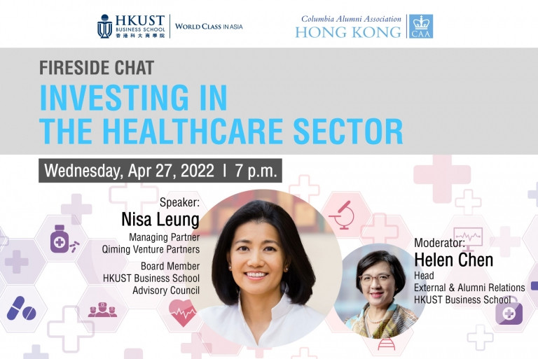 HKUST Business School and Columbia Alumni Association Hong Kong (CUAAHK) cordially invite you to this fireside chat with Nisa Leung, Managing Partner of Qiming Venture Partners and Helen Chen, Head of External & Alumni Relations of HKUST Business School. Nisa will share valuable insights from her successful career as a venture capitalist focusing on the Chinese healthcare market.