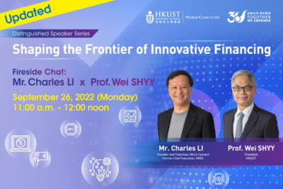 Shaping the Frontier of Innovative Financing: Fireside Chat with Mr. Charles LI and Prof. Wei SHYY 2022年9月26日 (星期一) 校外