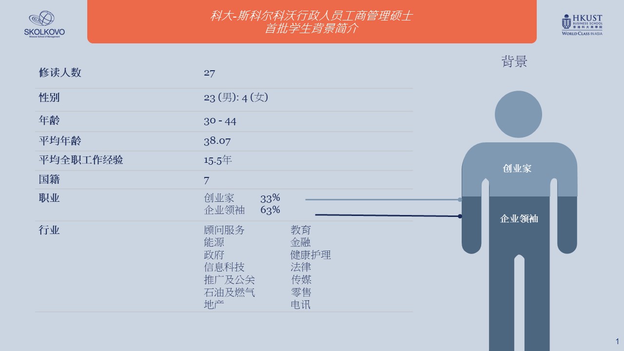 这个首创的EMBA 课程由香港科大商学院与莫斯科斯科尔科沃管理学院合办,着重欧亚事务,包括中国推动的一带一路倡议,Bonny 谓这个课程符合她的需要。「课程针对领导、创新及第四次工业革命,像是为我而设似的。」她希望找到一个让她完全投入的课程,让她挑战自我及接受别人的挑战,在个人及专业方面都能成长进步,包括明白如何从失败中学习。Bonny 说「舒适区」是她的同学不会用的词,并补充指:「我们刻意不让自己舒适下来,以激励自己去探索和学习。」