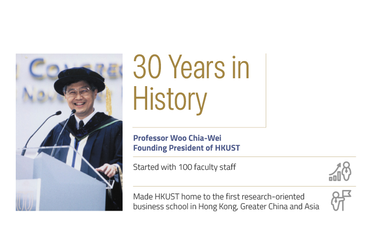 At a time when Hong Kong faced political uncertainty and an exodus of talent due to concerns about the city's political transition in 1997, a group of academics were willing to go against the tide and build something remarkable for Hong Kong. Professor WOO Chia-Wei, the founding President of HKUST, and his colleagues wanted to establish a research-oriented institution that was home to top scholars and world-class facilities in science and technology and the humanities and social sciences, as well as the first research-oriented business school in Hong Kong, Greater China, and indeed all of Asia.