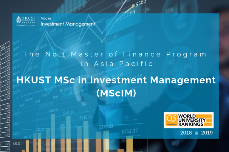 The HKUST MSc in Investment Management (MScIM) Program has been recognized as the No.1 Master of Finance Program in the Asia-Pacific region by the QS World University Rankings. Our Program has claimed the top spot in the region (top 30 globally) for two consecutive years.