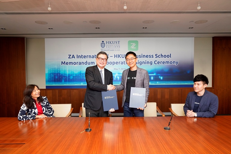 The signing ceremony on May 7 was attended by Mr Wayne XU, President of ZA International; Mr Ken LO, Head of Strategic Partnership of ZA International; Prof Sabrina LIN, Vice-President for Institutional Advancement of HKUST; and Prof TAM Kar Yan, Dean of the HKUST Business School.