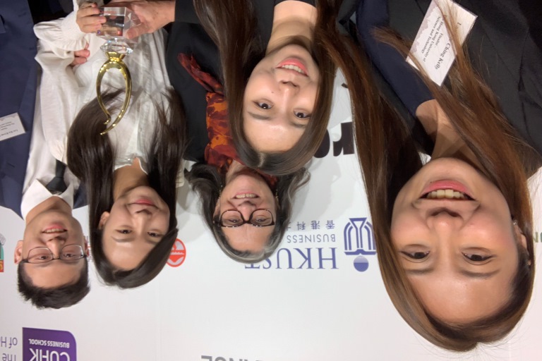 HKUST sent two teams to compete head-to-head with their peers. After several rounds of intense presentations, the team called “KCKG Consulting” formed by Corrine Tso (BBA in Marketing & Management), Kelvin Lee (BSc in Economics & Finance), Grace Tsui (BBA in Global Business and Finance) and Kelly Lau (BBA in Global Business and Operations Management), won the championship title.