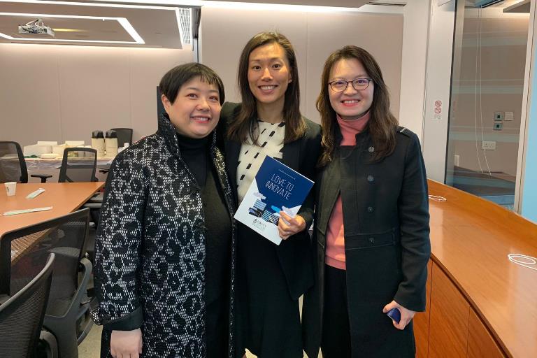 Prof NASON, Ms WAN, and Miss Angelica LEUNG, Head of Consumer Products, InvestHK (also an alumnus of the HKUST Business School)