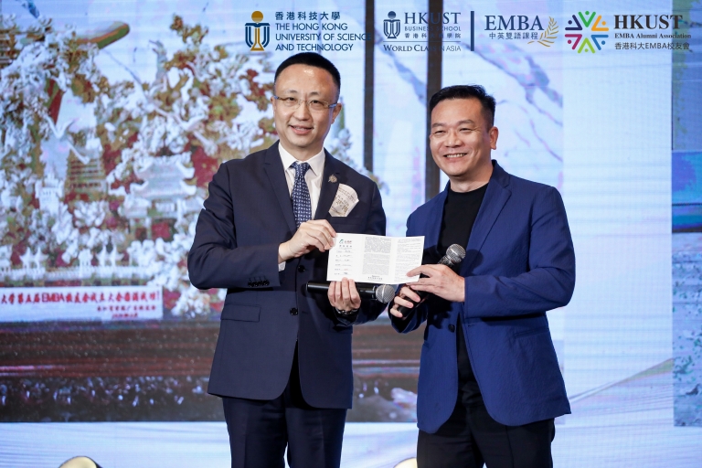 The Chairman of the fifth HKUST EMBA Alumni Association CAO Zhiwei led his team to welcome all guests and distributed the certificates to the new board members and directors of the 19 branches of the association. CAO announced the establishment of the association and its 2020 blueprint, including an annual trip to the Greater Bay Area.