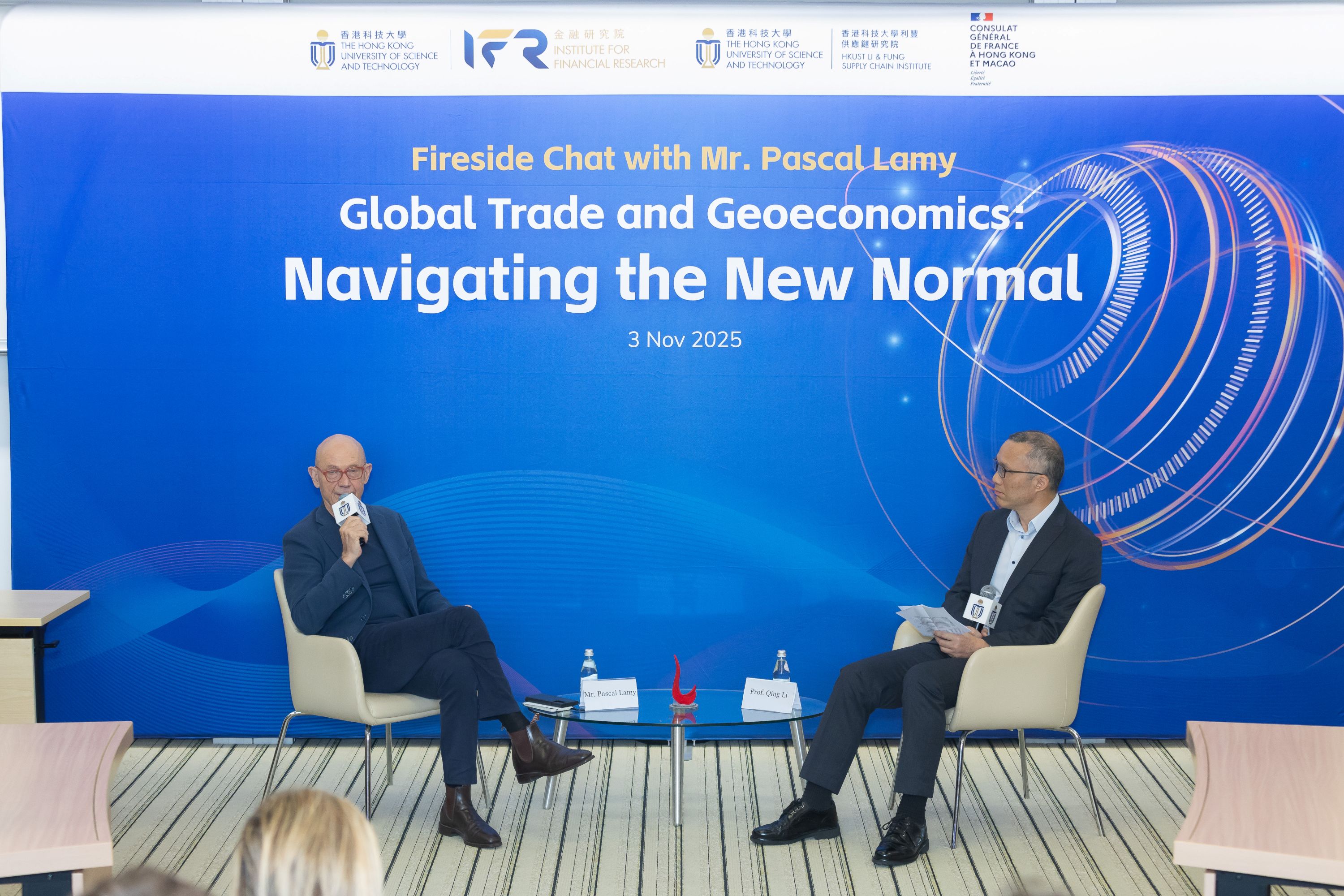 隨著地緣經濟格局不斷演變,國際貿易與各國間的經濟關係正逐步邁入「新常態」。為深入探討有關轉變,香港科技大學金融研究院(科大金融研究院)舉辦研討會,邀得世界貿易組織(世貿組織)前總幹事帕斯卡爾·拉米(Pascal Lamy )先生與科大利豐供應鏈研究院院長黎擎教授對談。活動由科大與法國駐香港及澳門總領事館合辦,吸引眾多學者、專業人士及學生參與。